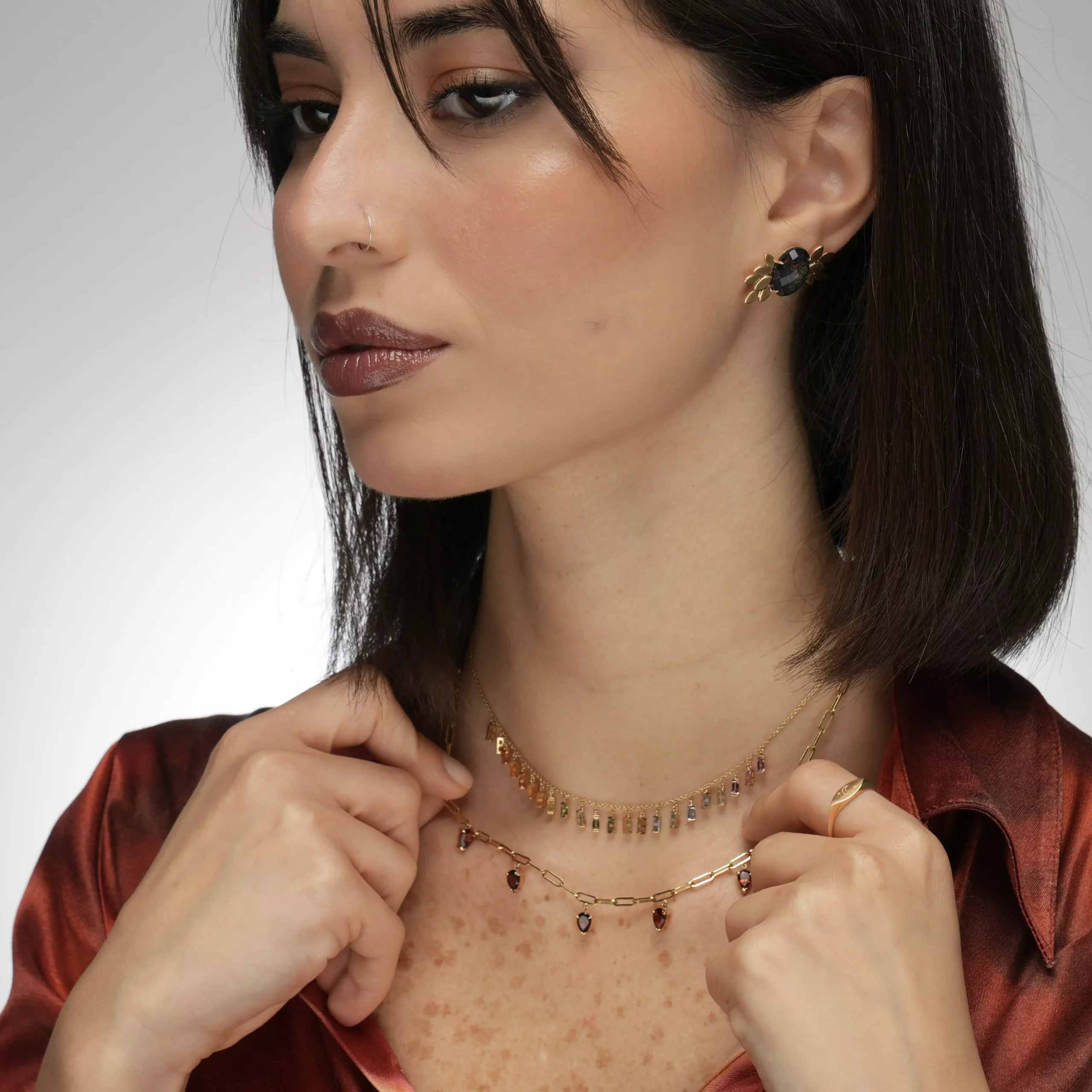 5 pear shape garnets on paper clip 18k gold necklace Gold: 6.3 g